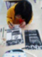 4. Exposición junio de 2018: Una gota de color. Los profesores de Arte de Chaoyang tuvieron que presentar la propuesta de sus alumnos para la exposición "de 2D a 3D". Nuestros alumnos experimentaron con la técnica del marmoleado para realizar una gran cantidad de composiciones abstractas. A partir de los resultados, tuvieron que hacer tres patrones geométricos que dieron una ilusión 3D colorida.